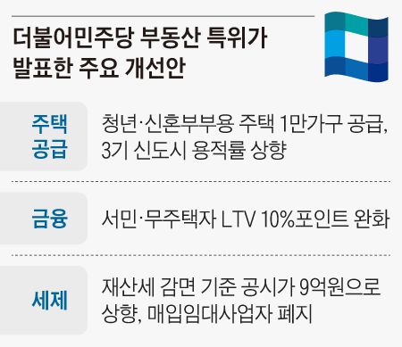 반면 세제 완화를 주장하는 목소리도 나왔다. 부동산특위 소속 김병욱 의원은 “중산층을 위한 정당으로 가려면 종부세 부과 기준을 현행 공시가 9억원에서 12억원으로 완화해야 한다”며 “서울 아파트 중위가격이 11억5000만원이고 공시가로 하면 9억원인데, 종부세 9억원 기준은 말이 안 된다”고 했다. 박성준 의원은 “시민들 얘기를 들어보니 ‘세금 좀 그만 올려라’고들 했다”고 했다. “부동산 정책 실패를 표심으로 확인했지 않느냐”는 주장도 나왔다.