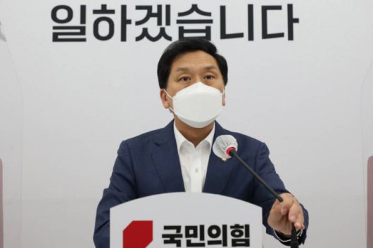 김기현 국민의힘 대표 권한대행이 26일 오후 서울 여의도 국회에서 청와대-여야5당 대표 오찬 간담회 관련 긴급 기자간담회를 하고 있다. 2021.05.26. /사진제공=뉴시스 |