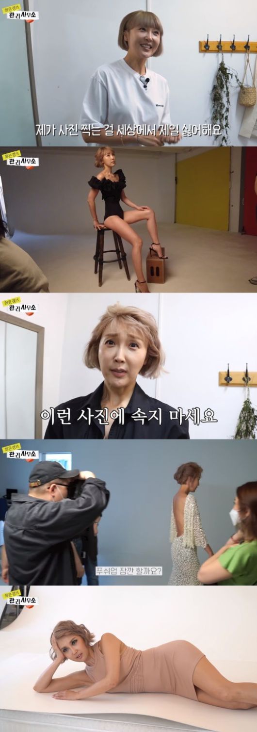 수영복으로 갈아입고 온 최은경은 본격적으로 촬영이 시작되자 걱정이 무색하게 모델 포즈를 구사했다. 그는 강풍기 바람을 맞으며 "연예인 된 것 같다"고 행복해했고 사진작가는 "무조건 자신감이다"며 최은경을 응원했다. 그 다음에는 크롭 셔츠와 핫팬츠를 입고 촬영을 이어갔고 최은경은 복근을 유감없이 보여줬다.