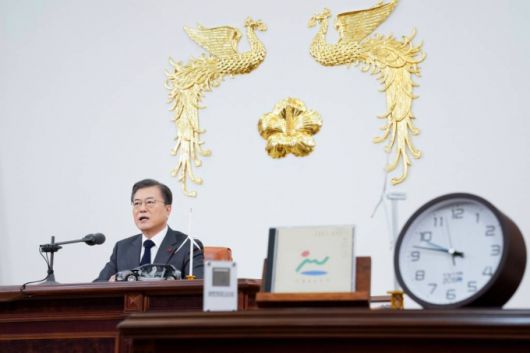 문 대통령은 "국제사회의 책임 있는 일원으로서 전 세계 온실가스 감축 노력에 적극 동참하고 국민, 산업계와 함께 기후위기에 선제적으로 대응함으로써 '기후위기를 지속가능한 발전의 기회'로 삼는 모범을 대한민국이 보여줄 것"이라고 강조했다.