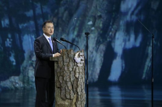 문재인 대통령은 30일 "한국 국민들은 지난날 식민지와 전쟁, 산업화를 겪으면서 인간과 자연이 서로에게 얼마나 큰 영향을 미치는지 경험했다"며 "다른 나라에 산림자원을 빼앗기고, 나무를 베어 땔감이나 산업용 연료로 썼다. 전쟁의 포탄과 산불로 숲이 더욱 황폐해지면서