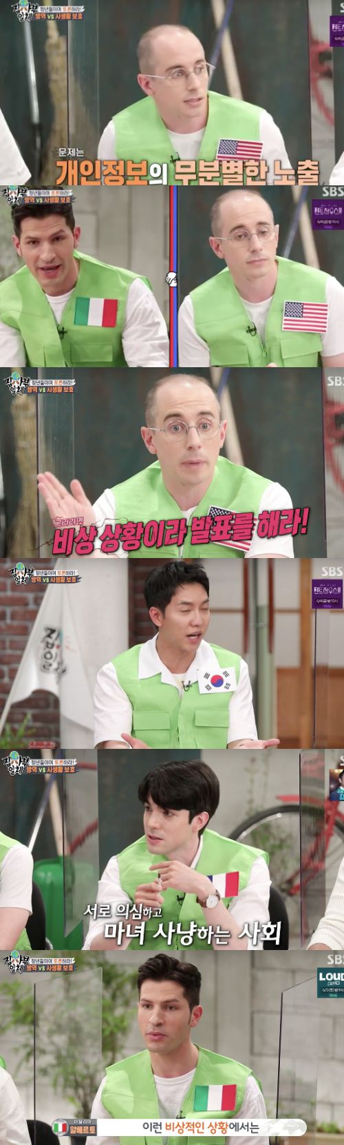 확진자 개인정보 공개에 대해서 토론을 나놨다. 타일러는 “자영업자의 피해 보상 대책이 없다, 미국에선 난리가 날 것”이라 했다.이에 마국진은 “공익을 위해 개인이 양보할 시기, 공개된 정보를 악용한 사람이 문제, 악용에 대한 처벌을 강화해야한다”고 했다. 이에 타일러는 “정보를 공개하지 않고도 진행할 수 있는 방법이 있다, 문제는 무분별하게 노출한다는 것, 정보 공개에 대해 거부권이 있어야한다”고 덧붙였다.