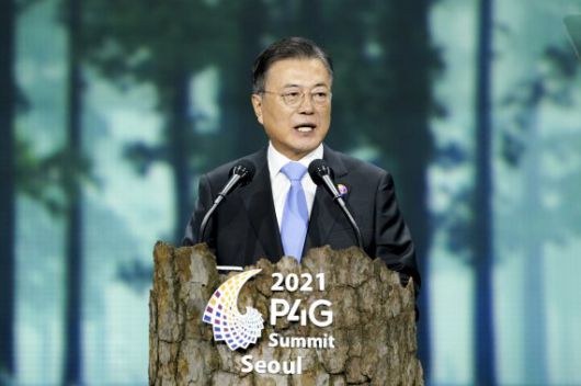 [서울=뉴시스]박영태 기자 = 문재인 대통령이 30일 오후 서울 동대문디자인플라자(DDP)에서 열린 ‘P4G 서울 녹색미래 정상회의’ 개회식에 참석해 연설을 하고 있다. 2021.05.30. since1999@newsis.com <저작권자ⓒ 공감언론 뉴시스통신사. 무단전재-재배포 금지.> /사진=뉴시스화상 |