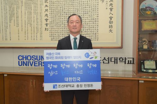 (광주=연합뉴스) 전승현 기자 = 조선대학교는 민영돈 총장이 '저출산 극복 함께해요! 범국민 포(4)함 릴레이 챌린지'에 31일 동참했다고 밝혔다.