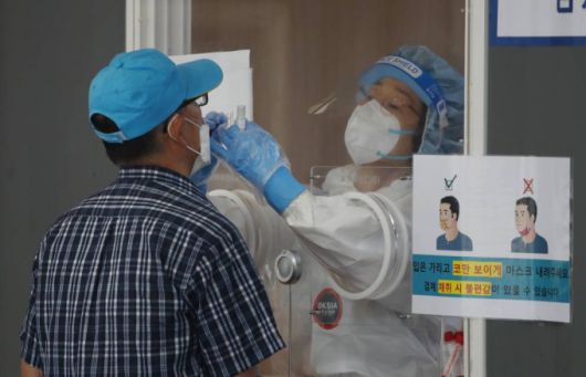 31일 오전 서울역 코로나19 임시선별검사소에서 시민들이 검사를 받고 있다./사진=뉴시스 |