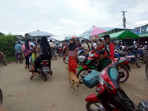적지 않은 시민들이 마스크를 쓰지 않은 양곤 시내 한 재래시장 모습. 2021.5.31 |