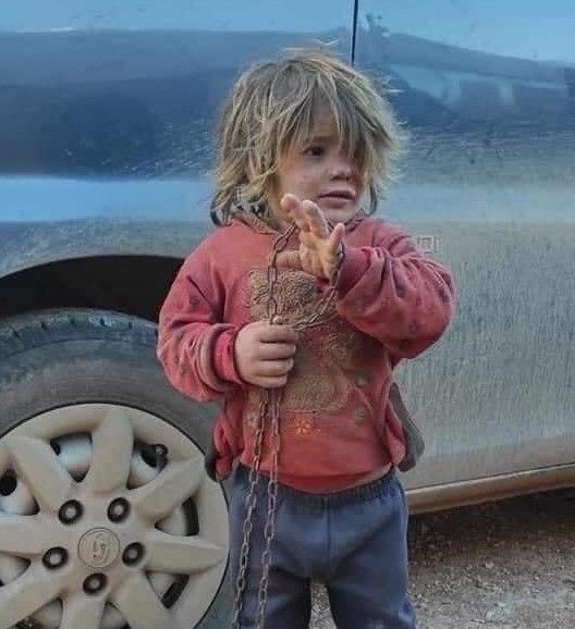 쇠사슬에 묶인 채 지내던 시리아의 6살짜리 소녀가 음식을 먹다가 질식사한 것으로 알려져 안타까움을 전하고 있다. /사진=트위터 |