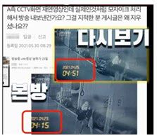 A씨가 25일 새벽 귀가하는 CCTV 영상 시각이 영상이 본방에서는 4시 15분이었지만, 다시보기에서는 4시 51분으로 나갔다는 주장이다.