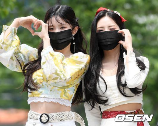 [OSEN=조은정 기자] 1일 오후 서울 양천구 목동 SBS에서 진행된 SBS 파워FM '최화정의 파워타임' 라디오 방송에 그룹 프로미스나인이 참석했다. 프로미스나인 송하영, 박지원이 출근하며 포즈를 취하고 있다. 2021.06.01 /cej@osen.co.kr