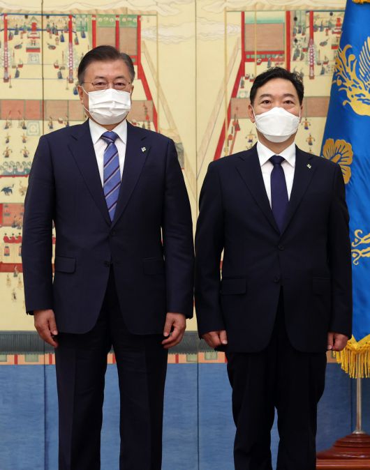문재인 대통령이 1일 오후 청와대에서 신임 김오수 검찰총장에게 임명장을 수여한 뒤 기념촬영을 하고 있다. [연합] |