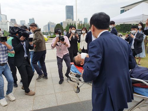 최 의원은 이날 오후 국회 본청 앞 농성장을 찾은 김기현 대표 권한대행 겸 원내대표의 설득 끝에 구급차에 실려 병원으로 옮겨졌다.