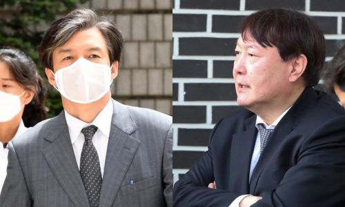 조국(왼쪽) 전 법무부장관과 윤석열 전 검찰총장. 한국일보 자료사진 |