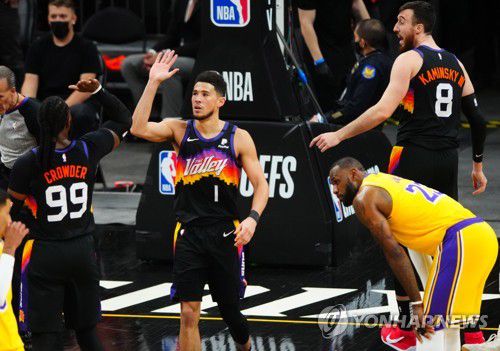 (서울=연합뉴스) 안홍석 기자 = 미국프로농구(NBA) 피닉스 선스가 '디펜딩 챔피언' LA레이커스를 30점 차로 완파하고 플레이오프(PO) 2라운드 진출까지 1승만을 남겨뒀다.