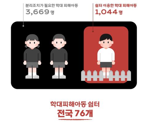 실제로 2019년 분리 조처가 내려진 학대 피해 아동은 3천669명이었으나, 이 가운데 28.4%인 1천44명만이 쉼터를 이용할 수 있었다.