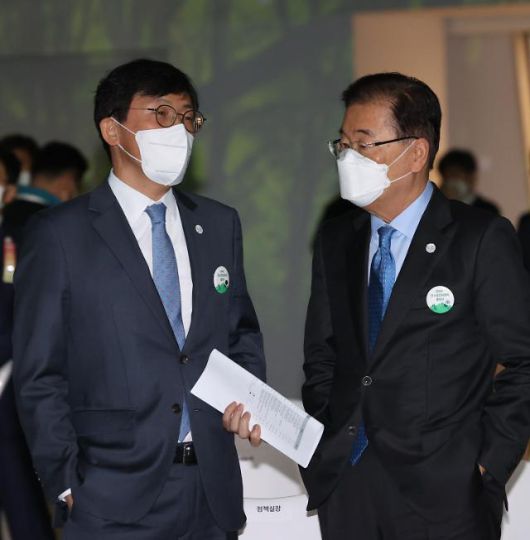 탄소중립위원회 출범식 참석한 정의용-이호승 (서울=연합뉴스) 이진욱 기자 = 29일 오후 서울 동대문디자인플라자에서 열린 '2050 탄소중립위원회 출범식'에 정의용 외교부 장관(오른쪽)과 이호승 정책실장이 참석해 있다. 2021.5.29 cityboy@yna.co.kr/2021-05-29 16:37:07/ <저작권자 ⓒ 1980-2021 ㈜연합뉴스. 무단 전재 재배포 금지.> |