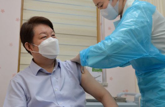 권영진 대구시장이 지난 4월 1일 오전 대구 중구보건소에서 아스트라제네카(AZ) 코로나19 백신을 접종하고 있다. (사진=뉴시스) |