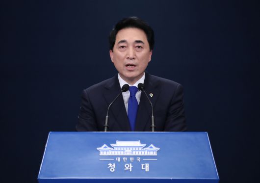 박수현 청와대 국민소통수석이 4일 오후 청와대 춘추관 대브리핑룸에서 문재인 대통령의 이성용 공군참모총장 사의 수용 관련 브리핑을 하고 있다. [연합] |