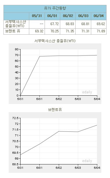 [표]유가 주간 동향