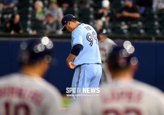 [스포티비뉴스=김태우 기자] 토론토의 에이스와 수비가 동시에 무너졌다. 류현진(34·토론토)은 결국 고비를 넘기지 못하고 토론토 이적 후 최다 실점을 기록했다.