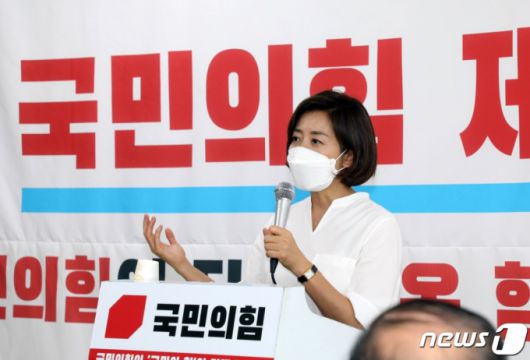 나경원 국민의힘 당 대표 후보가 5일 오전 국민의힘 제주도당에서 당원들과 간담회를 하고 있다/사진=뉴스1 |