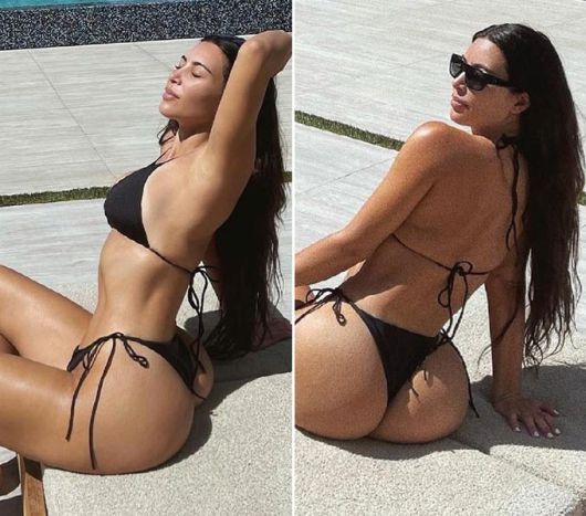 공개된 사진 속 킴 카다시안은 가느다란 끈으로 연결된 블랙 홀터넥 비키니를 입고 선베드에 앉아 햇살을 즐기는 모습이다.