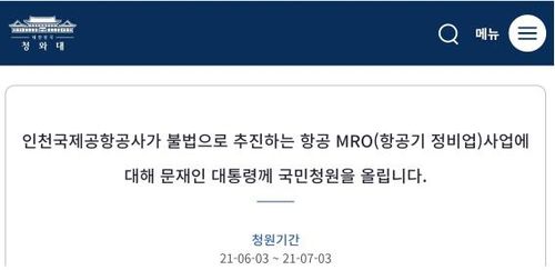 "인천공항공사 항공정비사업 진출 위법" 청와대 국민청원 |
