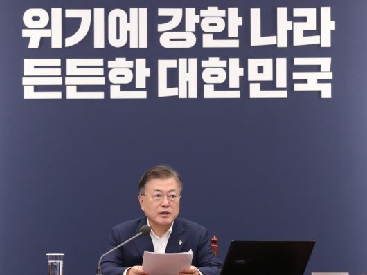 변이 바이러스 확산과 관련해 문 대통령은 “언제 종식될지 알 수 없고, 변이에 변이를 거듭하는 코로나에 대응해 해외 각국은 내년 이후 백신 준비에 신경 쓰고 있다”며 “우리도 내년분 백신 접종계약을 이른 시일 안에 체결하겠다. 3차 접종, 접종 연령 확보까지 백신물량을 차질 없도록 하겠다”고 했다.