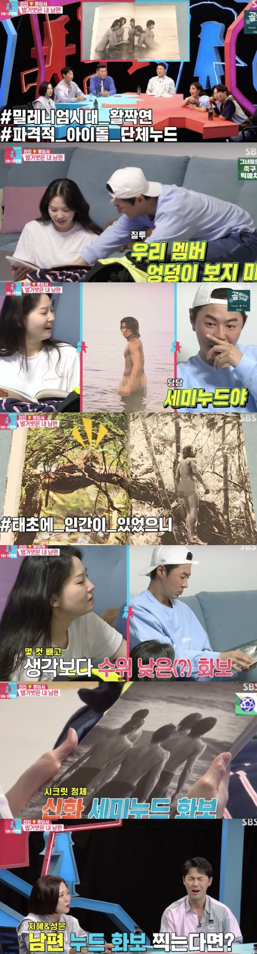이어 “이게 그 유명한 거?”라며 깜짝, 알고보니 과거 노출한 신화 세미누드 화보집었다. 결혼 전부터 숨겨놓은 판도라 상자였다고. 전진은 “장난으로 버렸다고 했는데”라며 당황했다.
