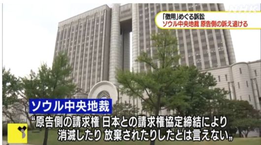 서울중앙지법이 강제징용 노동자와 유족 85명이 일본제철과 미쓰비시중공업 등 일본 기업 16곳을 상대로 낸 손해배상 소송을 7일 각하했다. NHK캡처 |