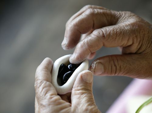 콩을 넣어 송편 빚는 모습(서애 류성룡 종가) |