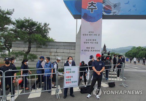 1인 시위하는 천안함 생존 장병들 |