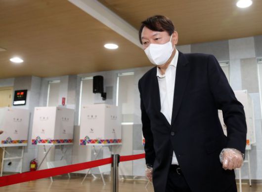 윤석열 전 검찰총장이 지난 4월2일 오전 서울 서대문구 남가좌1동주민센터에 마련된 사전투표소에서 투표를 하고 있다. 뉴스1 제공 |