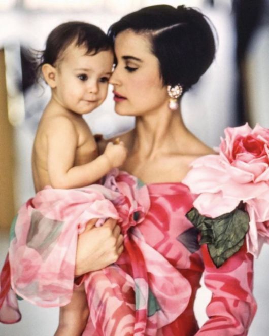 해당 사진에는 딸 루머 윌리스를 안고 있는 데미 무어의 모습이 담겨 있다. 데미 무어는 딸을 안고 사랑스럽게 바라보며 각별한 애정을 드러내고 있다. 화려한 플라워 무늬와 장식의 드레스를 입고 숏컷 헤어스타일을 한 데미 무어는 절정의 미모를 자랑하고 있다. 건강미 넘치는 몸매와 자신을 쏙 빼닮은 딸을 안은 모습이 평화로워 보인다.