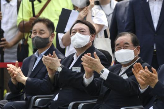 [서울=뉴시스]조성우 기자 = 윤석열 전 검찰총장이 9일 서울 중구 남산예장공원에서 열린 독립운동가 우당 이회영 선생 기념관 개관식에 참석해 박수를 치고 있다. (공동취재사진) 2021.06.09. photo@newsis.com <저작권자ⓒ 공감언론 뉴시스통신사. 무단전재-재배포 금지.> /사진=뉴시스화상 |
