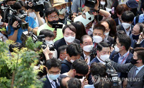 취재진에 둘러싸인 윤석열 전 검찰총장 |