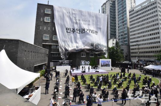 10일 서울 용산구 갈월동 민주인권기념관(옛 남영동 대공분실)에서 열린 제34주년 6.10민주항쟁 기념식. 황진환 기자 |