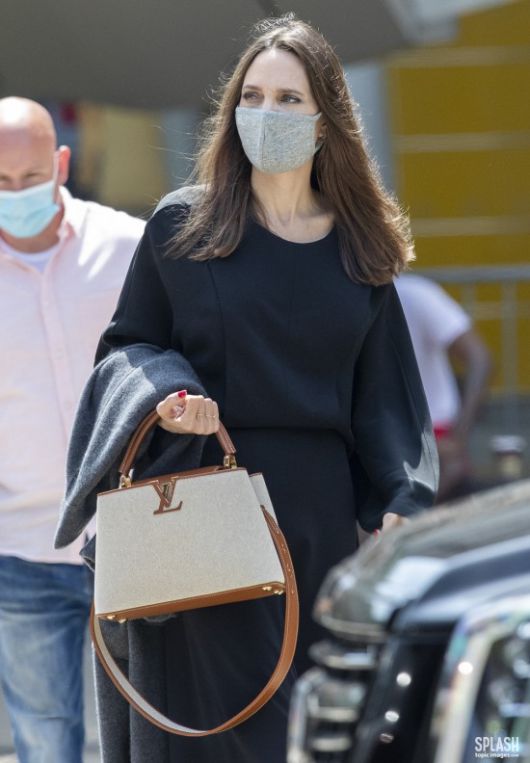 공개된 사진 속 졸리는 우아한 검은색 원피스에 명품백을 손에 들고 이동 중인 모습. 올해 46세라는 사실이 믿기지 않을 정도로 우아하고 아름답다.