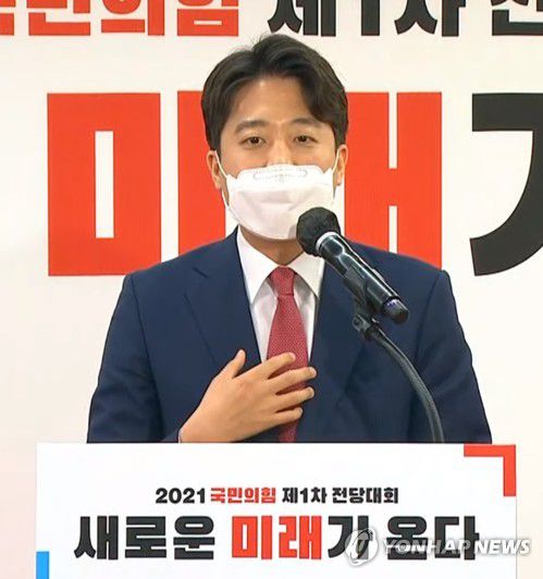 (서울=연합뉴스) 홍정규 이동환 기자 = 국민의힘 새 대표에 36세의 이준석 후보가 선출됐다.