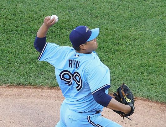 토론토 류현진이 11일(한국시간) 미국 일리노이주 시카고 개런티드 필드에서 열린 시카고 화이트삭스 전에서 투구하고 있다. 일리노이 | AP연합뉴스 |