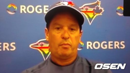 [사진] 토론토의 찰리 몬토요 감독이 11일(한국시간) 시카고 화이트삭스와의 경기를 마친 뒤 화상 인터뷰를 진행하고 있다. <토론토 블루제이스 구단 제공 영상 캡처> |