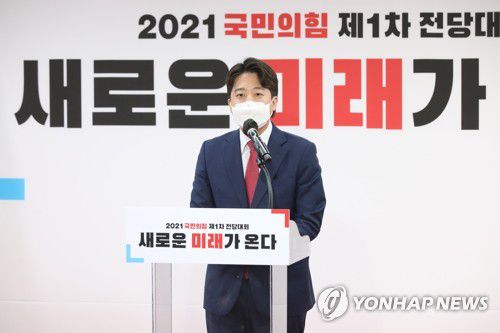 수락 연설하는 국민의힘 이준석 신임 당대표 |