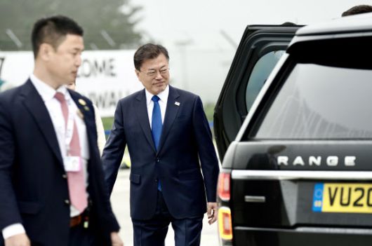 G7(주요 7개국) 정상회의에 참석하는 문재인 대통령과 김정숙 여사가 11일 오후(현지시간) 영국 콘월 뉴키 공항에 도착, 숙소로 이동하고 있다. (사진=연합뉴스) |