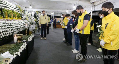 (광주=연합뉴스) 정회성 기자 = 세월호 유가족이 광주 철거건물 붕괴참사 희생자의 넋을 위로했다
