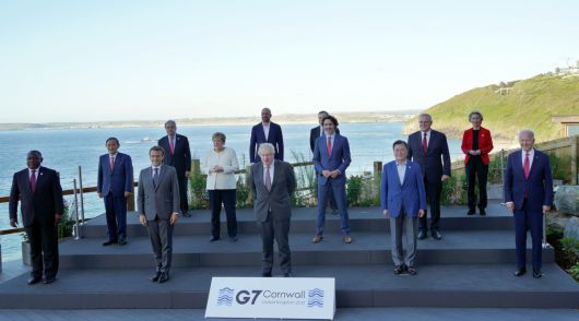문재인 대통령이 12일(현지시간) 영국 콘월에서 G7 정상회의에 참석한 정상들과 기념촬영을 하고 있다. 앞줄 왼쪽부터 시릴 라마포사 남아공 대통령, 에마뉘엘 마크롱 프랑스 대통령, 보리스 존슨 영국 총리 , 문재인 대통령, 조 바이든 미국 대통령, 스가 요시히데 일본 총리, 앙겔라 메르켈 독일 총리, 쥐스탱 트뤼도 캐나다 총리, 스콧 모리슨 호주 총리. 안토니우 구테흐스 UN 사무총장, 샤를 미셸 EU 정상회의 상임의장, 마리오 드라기 이탈리아 총리, 우르줄라 폰데어라이엔 EU 집행위원장. 콘월/뉴시스 |
