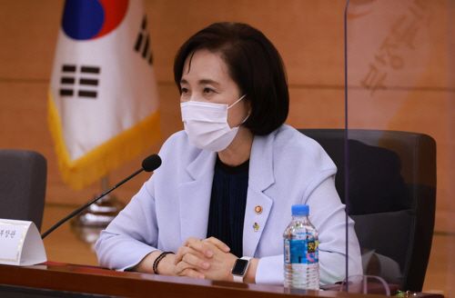 지난 11일 유은혜 부총리 겸 교육부 장관이 서울 광화문 정부서울청사에서 교원단체 대표들과 전면등교 방안 관련 간담회를 하고 있는 모습. [연합뉴스] |