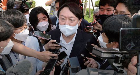 지난 6월 9일 오후 서울 중구 남산예장공원에서 행사 참석을 위해 이동하던 윤석열 전 검찰총장이 취재진과 지지자들에게 둘러싸여 있다. photo 조선일보 |