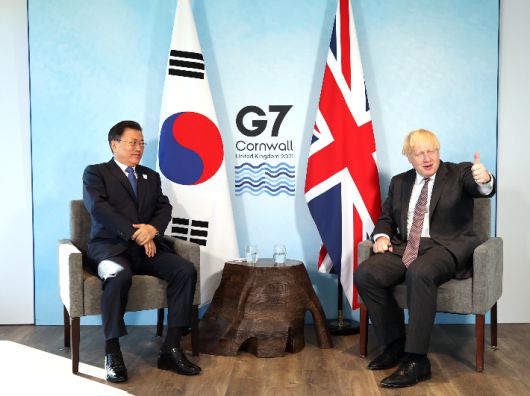 영국 콘월에서 개최된 주요 7개국(G7) 정상회의를 계기로 단독 회담에 나선 두 정상은 "양국이 브렉시트 이후에도 정치, 경제 분야에서 협력의 연속성을 유지하고 관계를 안정적으로 발전시켜나가고 있다"고 평가하며 향후 협력을 확대하기로 했다.