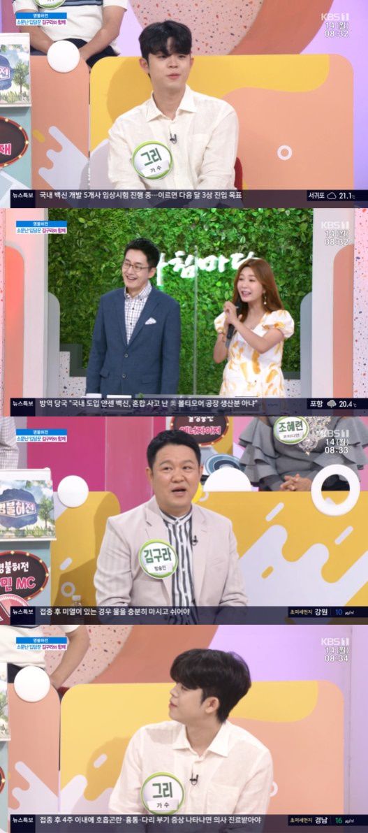 14일 오전 방송된 KBS 1TV '아침마당'에서 김구라는 아들 그리에 대한 이야기를 꺼냈다. 그는 "그리가 신보가 나왔는데 몰랐다가 이번에 알았다"며 "아들이 어디 가서 자기 얘기를 하지 말아달라고 부탁한다"라고 말했다.