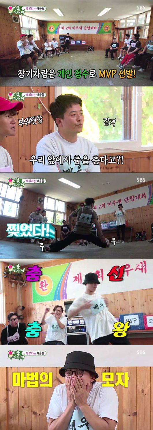 한편, 이날은 단합대회를 간 '미우새' 아들들의 '상상초월' 장기자랑으로 스튜디오는 물론, 보는 이들의 배꼽을 빠지게 했다. 특히, 오민석은 MVP 상품을 획득하기 위해 그동안 숨겨뒀던 댄스 실력을 뽐내 '춤신춤왕'에 등극했다. 임원희는 오민석의 댄스 실력에 대항해 '다리찢기' 등 특유의 댄스 실력을 선보여 웃음과 박수를 한몸에 받았다. 또 제기차기 공식기록 3,400개 보유자 박군은 특전사 출신답게 한 자리에서 순식간에 제기차기 200개를 해냈다.