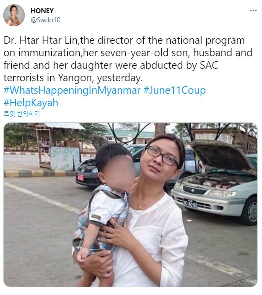 아웅산 수지 국가고문이 집권하던 시절 미얀마의 코로나19 방역 부문 수장을 지냈던 따르 따르 린 박사가 군사정권에 의해 체포됐다. 미얀마의 코로나19 확진자 수는 빠르게 증가하고 있다. 트위터 갈무리 |